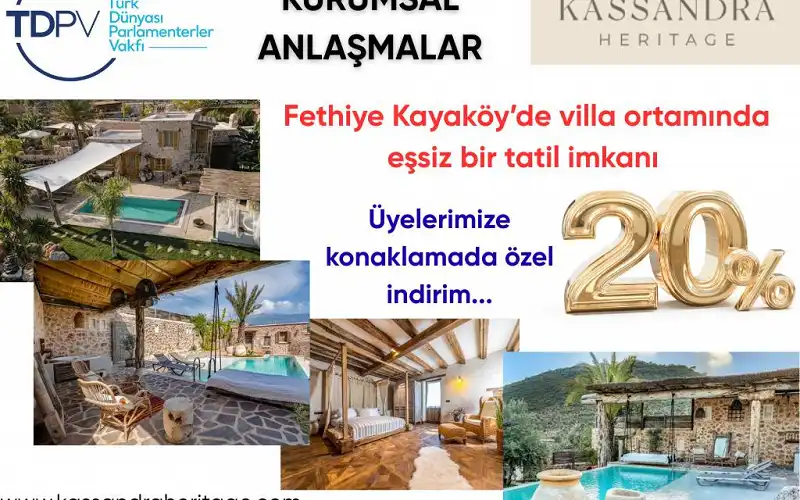 Vakfımız ile Kassandra Heritage Butik Hotel arasında yapılan kurumsal anlaşma ile tüm üyelerimiz konaklamada özel indirim imkanlarından yararlanabilecektir.