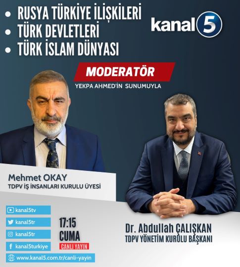 Vakıf Başkanımız Dr. Abdullah ÇALIŞKAN ve Vakıf İş İnsanları Kurulu Üyemiz Mehmet OKAY KANAL 5 televizyonunun Moderatör programında Yekpa AHMED'in konuğu oldular. Güncel konuların da ele alındığı programda Vakfın kuruluş çalışmalarına başladığı İş İnsanları Kurulu hakkında da bilgi verildi.
