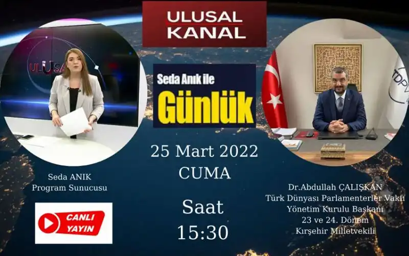 Dr. Abdullah ÇALIŞKAN Ulusal Kanal'da Seda ANIK'ın sunduğu ''Günlük'' programına katıldı.